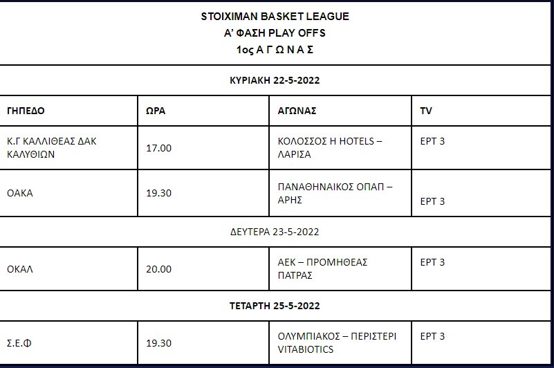 Αναλυτικά το πρόγραμμα της πρώτης φάσης των playoffs