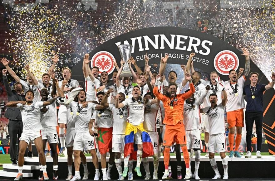 Ευρωπαϊκή κούπα μετά από 42 ολόκληρα χρόνια για την Άιντραχτ Φρανκφούρτης. Οι «Αετοί» κέρδισαν τη Ρέιντζερς με 5-4 στα πέναλτι (1-1 το ματς) και πήραν το Europa League μέσα στο «Σάντσεθ Πιθχουάν». Πρωταγωνιστές οι Τραπ και Μπορέ, o οποίος ήταν εκείνος που ισοφάρισε στην κανονική διάρκεια και πέτυχε και το 5ο κρίσιμο πέναλτι.