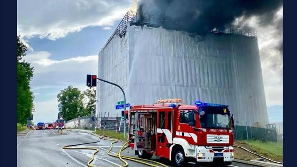 Η μεγάλη φωτιά ξέσπασε αργά το απόγευμα στον χώρο κατασκευής των μελλοντικών κτιρίων της διεθνούς αστυνομίας και του ομοσπονδιακού κέντρου για τους αιτούντες άσυλο, σύμφωνα με δημοσιογράφο του Γαλλικού Πρακτορείου.