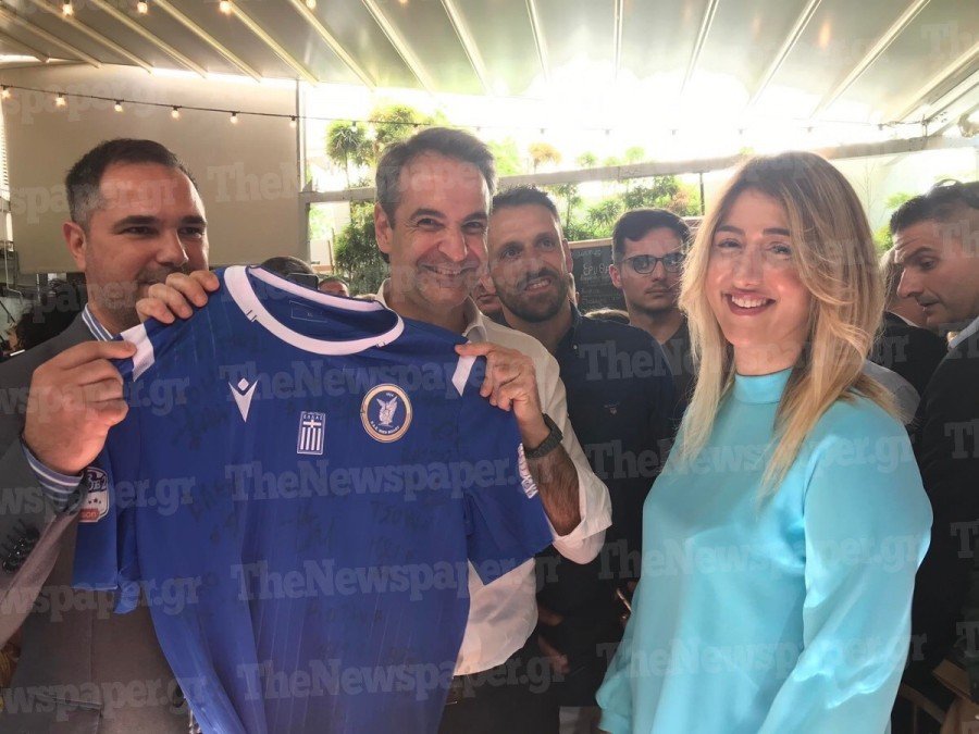 O πρωθυπουργός της Ελλάδας, Κυριάκος Μητσοτάκης βρέθηκε στον Βόλο, συναντώντας θεσμικούς φορείς της πόλης με τον γενικό αρχηγό της Νίκης, Απόστολο Κουφογεώργο να του κάνει δώρο μία φανέλα της ομάδας, ενώ τέθηκαν μέσω επιστολής και διάφορα ζητήματα των κυανόλευκων.
