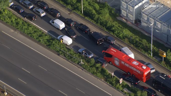 Με καθυστέρηση έφτασε στο «Σταντ ντε Φρανς» η αποστολή της Λίβερπουλ, καθώς το πούλμαν της ομάδας έπεσε σε κίνηση.