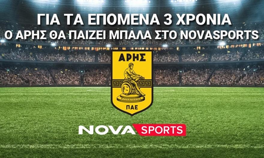 "Ο Άρης θα συνεχίζει να παίζει αποκλειστικά στο «γήπεδο» του Novasports! Η ΠΑΕ Άρης και η Nova, μέλος της United Group, του κορυφαίου παρόχου τηλεπικοινωνιών και μέσων ενημέρωσης στη Νοτιοανατολική Ευρώπη, ανακοινώνουν την ανανέωση της συνεργασίας τους για τις τρεις (3) επόμενες σεζόν (2022-2023, 2023-2024, 2024-2025).