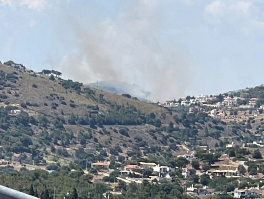 Η φωτιά καίει κοντά στον οικισμό Πλάκα, ωστόσο δεν απειλείται, για την ώρα, κατοικημένη περιοχή.