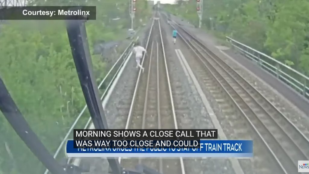 Όπως μπορείτε να δείτε και στο video που δημοσίευσε η Metrolinx, το οποίο είναι από τις γραμμές κοντά στον ποταμό Χάμπερ, τρία παιδιά έχουν μπει στο δρόμο του τρένου, εκ των οποίων τα δύο, ουσιαστικά παίζουν την ζωή τους κορόνα-γράμματα, καθώς το άλλο έχει κάτσει απλά στην άκρη.