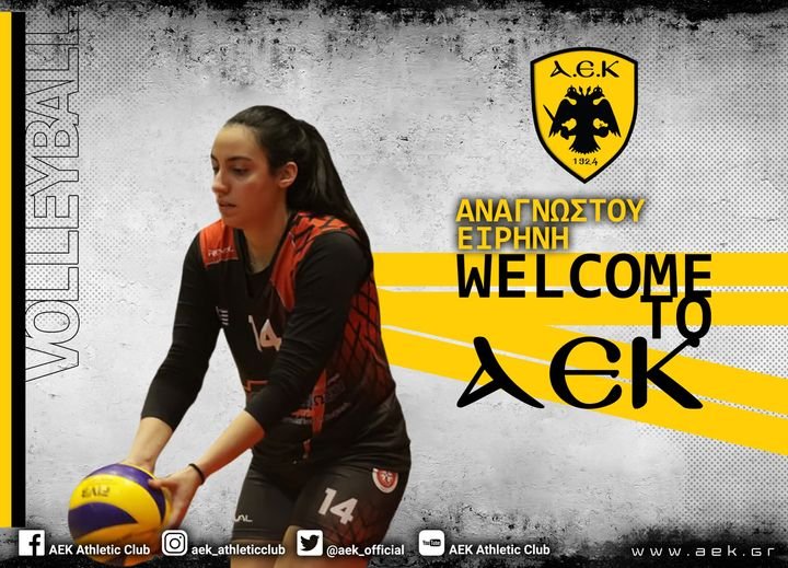 H AEK βρίσκεται στην ευχάριστη θέση να ανακοινώσει την έναρξη της συνεργασίας της με την Ειρήνη Αναγνώστου. Η 27χρονη (20/09/1994) πασαδόρος, ύψους 1,76 μ., υπέγραψε μονοετές συμβόλαιο και εντάσσεται στο δυναμικό της γυναικείας ομάδας Βόλεϊ του Συλλόγου.