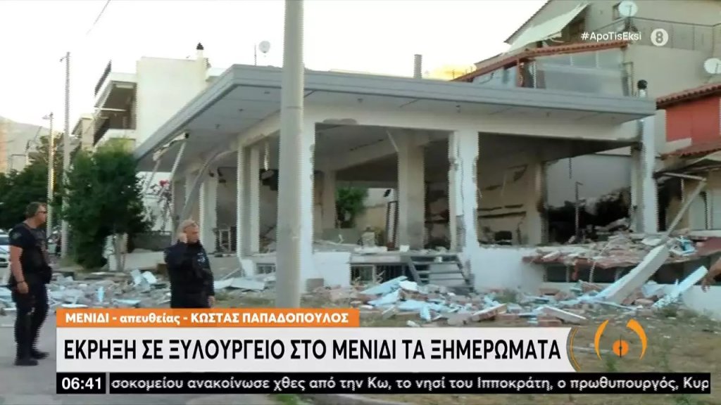 Ισοπεδώθηκε το ξυλουργείο στο Μενίδι μετά την ισχυρότατη έκρηξη που σημειώθηκε τα ξημερώματα της Παρασκευής.