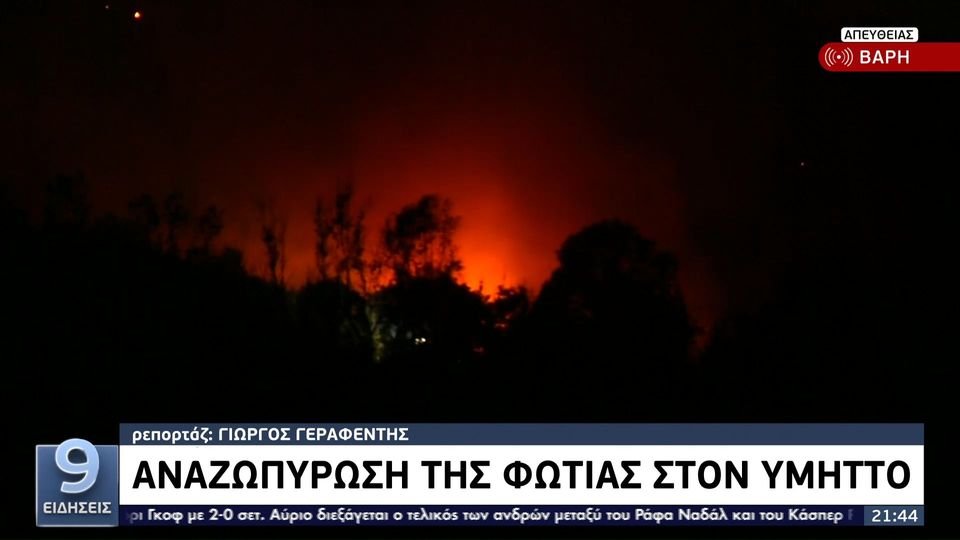 Αναζωπύρωση της φωτιάς στον Υμηττό (VIDEO)