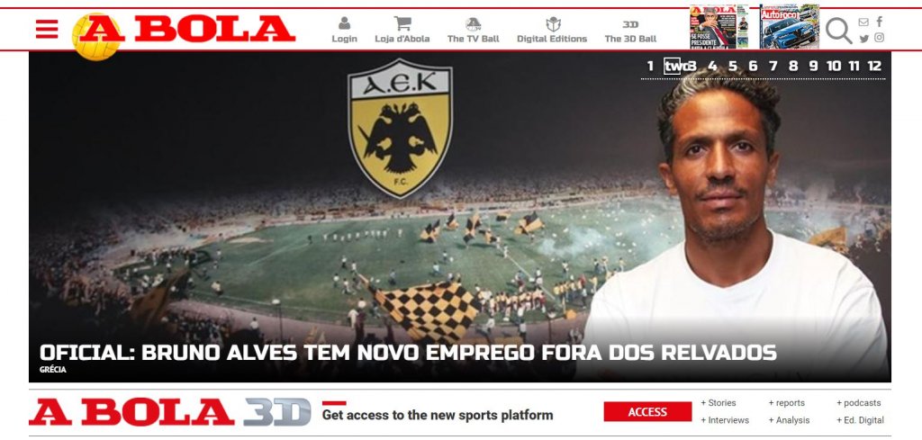 Η ΑΕΚ ανακοίνωσε πριν από μερικές ώρες την πρόσληψη του Μπρούνο Άλβες ως αθλητικού της διευθυντή και τα πορτογαλικά Μέσα «παίζουν» τη συγκεκριμένη είδηση πολύ ψηλά. Άλλωστε ο Μπρούνο Άλβες έχει στεφθεί πρωταθλητής Ευρώπης με την Πορτογαλία το 106 και στη χώρα του χαίρει σεβασμού και αναγνώρισης.