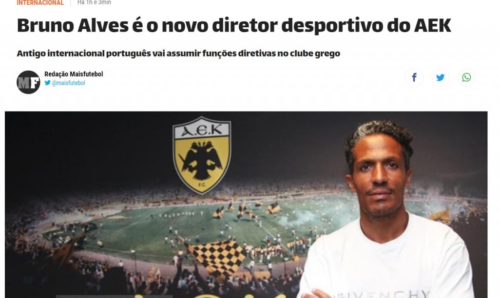 O'jogo- Επίσημο: Ο Μπρούνο Άλβες ανέλαβε αθλητικός διευθυντής της ΑΕΚ μετά το τέλος της καριέρας του