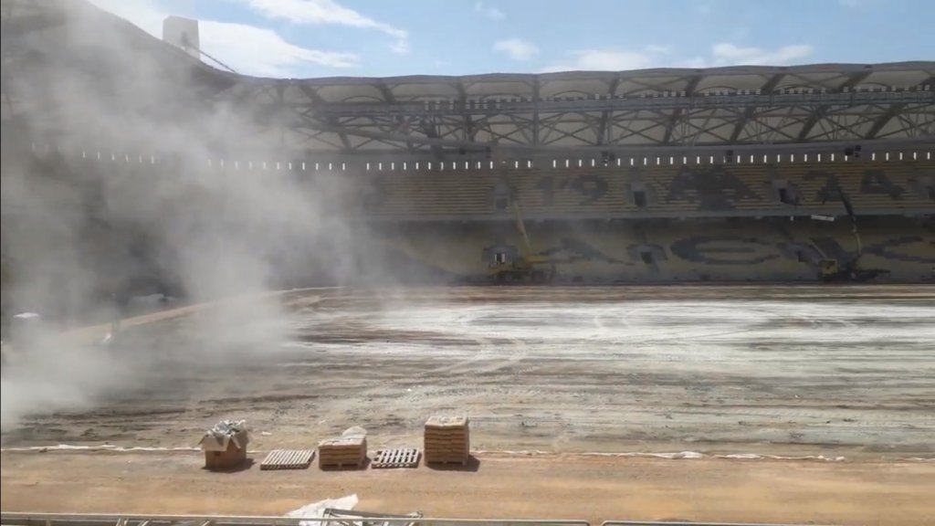 Στρώνεται το λίπασμα πάνω από την άμμο στον αγωνιστικό χώρο του Ναού της ΑΕΚ (VIDEO)