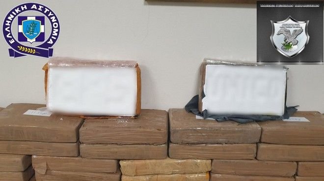 Από τις έρευνες που πραγματοποιήθηκαν στους συλληφθέντες, σε Ι.Χ. φορτηγό τύπου βαν, σε όχημα, σε πολυτελή μονοκατοικία που είχαν μισθώσει, καθώς και σε οικία που διέμεναν στην Αττική, μεταξύ άλλων, βρέθηκαν και κατασχέθηκαν 297 κιλά και 257 γραμμάρια κοκαΐνης, χωρισμένα σε 260 δέματα, πιστόλι με γεμιστήρα που περιείχε 9 φυσίγγια, κουτί που περιείχε 41 φυσίγγια, 2 φορητοί ασύρματοι, 2 συσκευές παρεμβολής σήματος, 2 ηλεκτρονικές συσκευές εντοπισμού θέσης, 1.000 ευρώ, ως προερχόμενα από εμπορία ναρκωτικών ουσιών, γάντια εργασίας, μονωτικές ταινίες, μεταλλικός χαρτοκόπτης και 11 κινητά τηλέφωνα που χρησιμοποιούσαν για τις παράνομες συναλλαγές τους καθώς και 3 πακέτα σύνδεσης κινητής τηλεφωνίας.