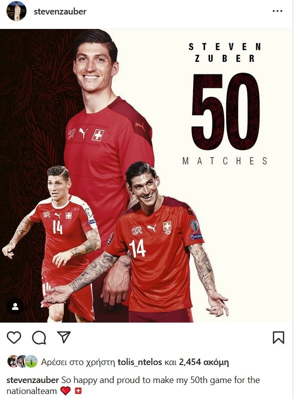 Τσούμπερ: Χαρούμενος και περήφανος για την 50η εμφάνιση με την Ελβετία (ΦΩΤΟ)