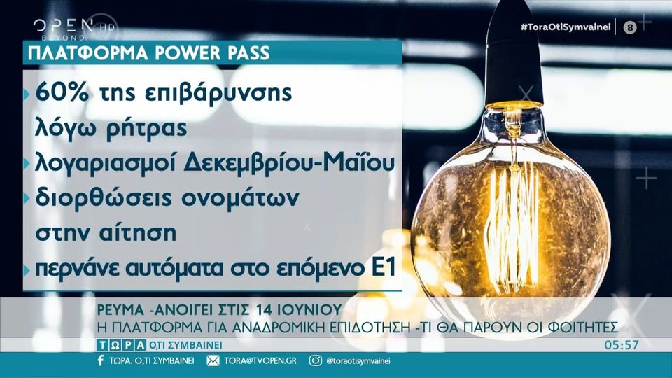Ανοίγει στις 14 Ιουνίου η πλατφόρμα για αναδρομική επιδότηση ρεύματος (VIDEO)
