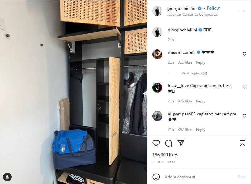 Ο 37χρονος κεντρικός αμυντικός πόσταρε και μια φωτογραφία από τα αποδυτήρια, με τον σάκο του μπροστά στο άδειο ντουλάπι, αποχαιρετώντας έτσι μια για πάντα (ως ποδοσφαιριστής τουλάχιστον) την Γιουβέντους.