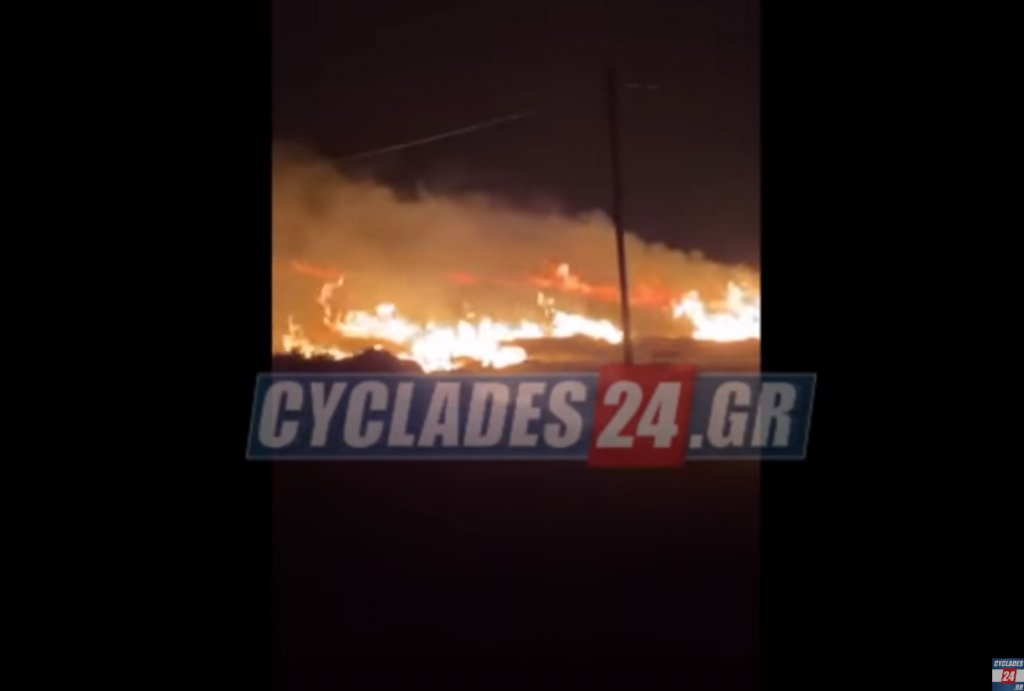 Συνεχίζει να μαίνεται η μεγάλη φωτιά που ξέσπασε χθες το βράδυ στην Πάρο σε δύσβατη χορτολιβαδική έκταση προς τη μεριά του Μώλου με ξηρά χόρτα και χαμηλή βλάστηση.