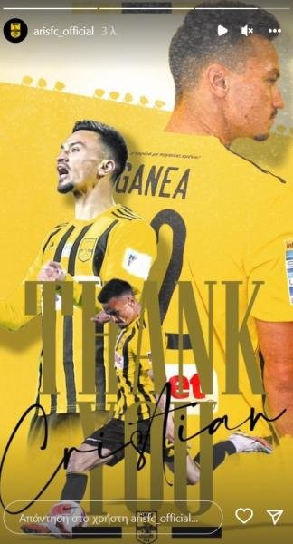 Παρά το γεγονός ότι ο Ρουμάνος μπακ αποτελεί και επίσημα παίκτης του Παναθηναϊκού, η «κιτρινόμαυρη» ΠΑΕ δεν αμέλησε να τον ευχαριστήσει για τις εμφανίσεις του τις δύο σεζόν που ήταν κάτοικος Χαριλάου, λέγοντάς του το δικό της «ευχαριστώ».