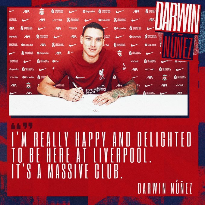 Έσκασε η «βόμβα» με τον Ντάρβιν Νούνιες! Η Λίβερπουλ ανακοίνωσε το super deal με την Μπενφίκα για την αγορά του Ουρουγουανού killer, με τον 22χρονο στράικερ να υπογράφει συμβόλαιο διάρκειας πέντε ετών ως το καλοκαίρι του 2027.