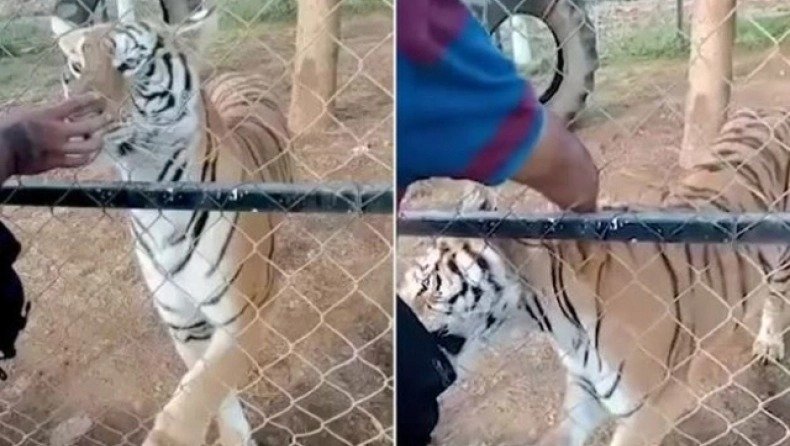 Το βίντεο κάνει τον γύρο του διαδικτύου τις τελευταίες ώρες και δείχνει τον 23χρονο Jose de Jesus να προσπαθεί να χαϊδέψει το άγριο αιλουροειδές στον ζωολογικό κήπο στο Periban, στο δυτικό Μεξικό, όταν ξαφνικά η τίγρης του αρπάζει το χέρι και το δαγκώνει με τον άνδρα να ακούγεται να ουρλιάζει, σφαδάζοντας από τον πόνο.