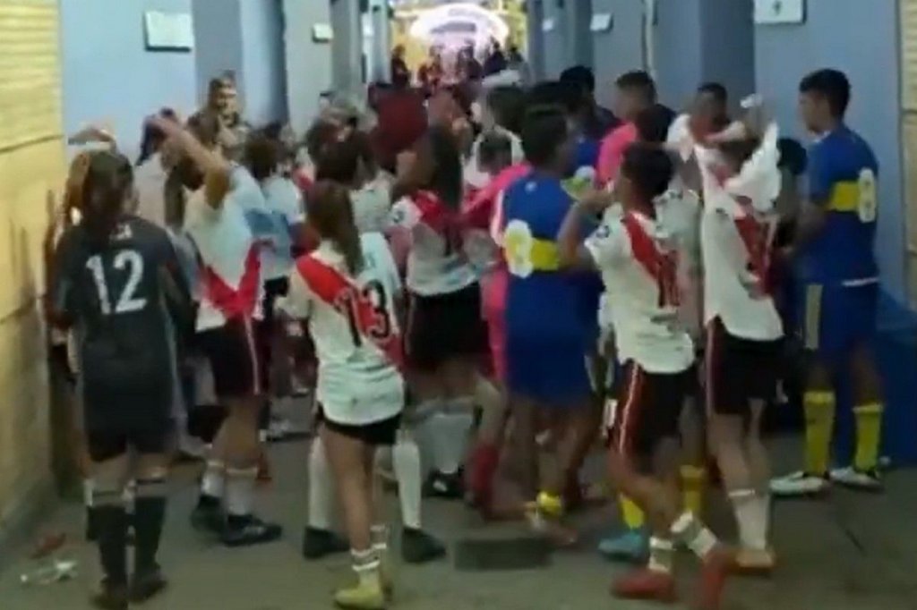 Σε τουρνουά ακαδημιών, στην Παραγουάη, αγόρια της Μπόκα Κ-13 τραγούδησαν συνθήματα, μαζί με κορίτσια της Ρίβερ Κ-16.