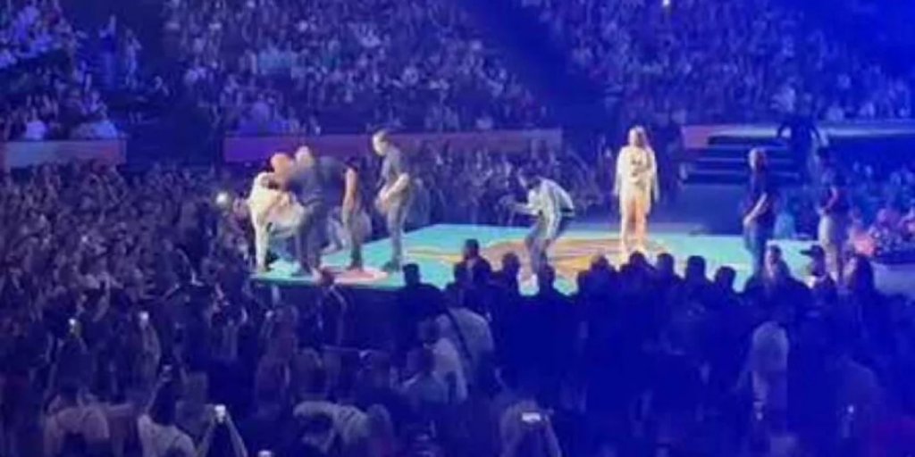 Το πρόγραμμα για περίπου 20 λεπτά σταμάτησε και ένας dj έπαιζε μουσική προκειμένου να μπουν όλα σε τάξη. Ωστόσο, το πλήθος των επωνύμων έφυγε από τις κερκίδες όπου καθόταν.