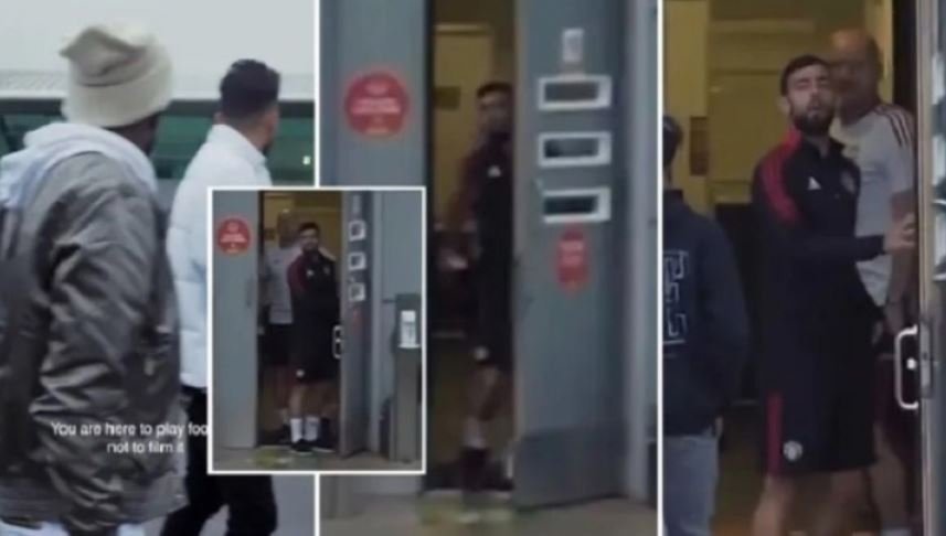 Όταν ο Βραζιλιάνος φουλ μπακ έφτασε στο «Κάρινγκτον» και οι κάμερες κατέγραφαν τις στιγμές μέχρι το πάρκινγκ των εγκαταστάσεων, τον είδε ο Μπρούνο μαζί με τον Φρεντ να γελούν και ο Πορτογάλος τους φώναξε μεταξύ... σοβαρού και αστείου:
