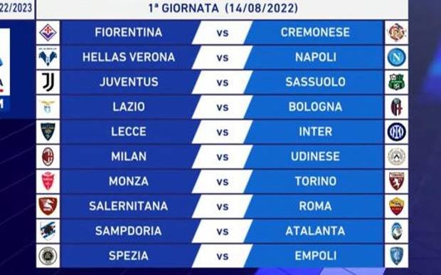 Η πρεμιέρα της λίγκας δεν περιλαμβάνει κάποιο μεγάλο ματς, με την πρωταθλήτρια Μίλαν να υποδέχεται την Ουντινέζε και τη συντοπίτισσα Ίντερ να φιλοξενείται από τη Λέτσε. Η Γιουβέντους περιμένει τη Σασουόλο, ενώ η Ρόμα αντιμετωπίζει εκτός έδρας τη Σαλερνιτάνα.