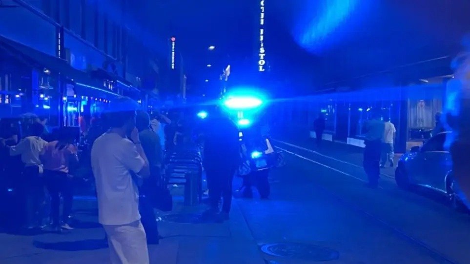 Βίντεο στα μέσα κοινωνικής δικτύωσης δείχνει υπηρεσίες έκτακτης ανάγκης έξω από το London Pub στο Όσλο.