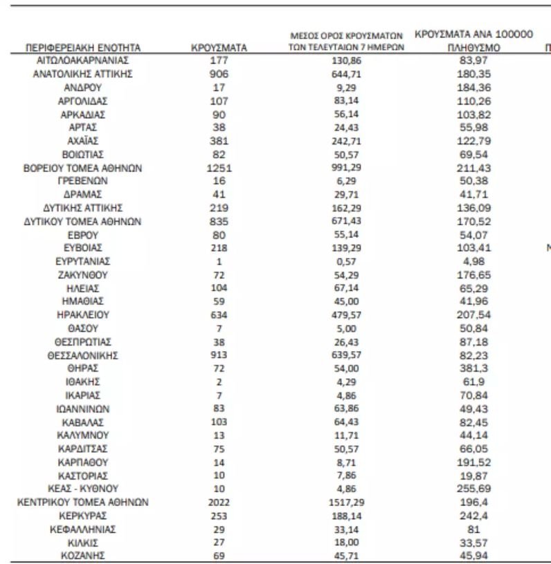 Στο «κόκκινο» παραμένει η Αττική καθώς από τα 12.082 νέα κρούσματα που ανακοίνωσε σήμερα ο ΕΟΔΥ οι 7.122 μολύνσεις εντοπίζονται στο Λεκανοπέδιο.