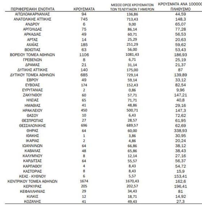 Στο «κόκκινο» παραμένει η Αττική καθώς από τα 9.294 νέα κρούσματα που ανακοίνωσε σήμερα ο ΕΟΔΥ οι 5.902 μολύνσεις εντοπίζονται στο Λεκανοπέδιο.