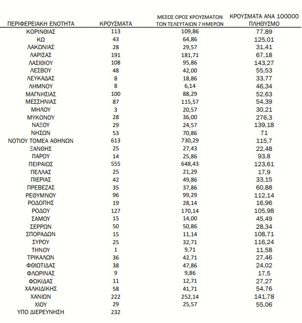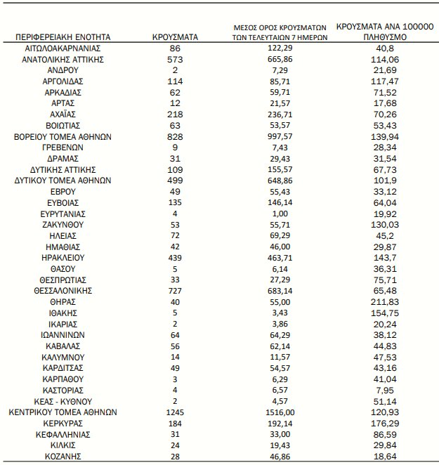 Αναλυτικότερα τα κρούσματα στις περιφερειακές ενότητες της Αττικής: