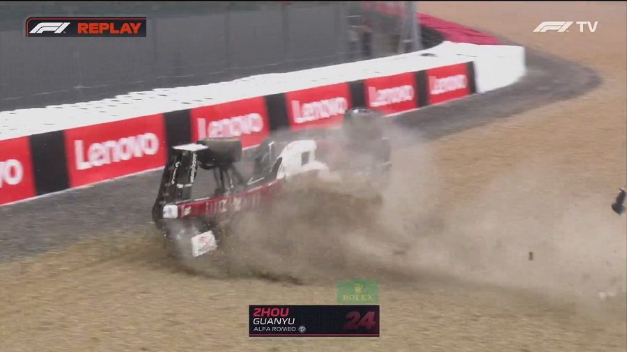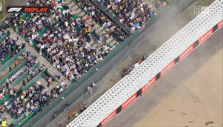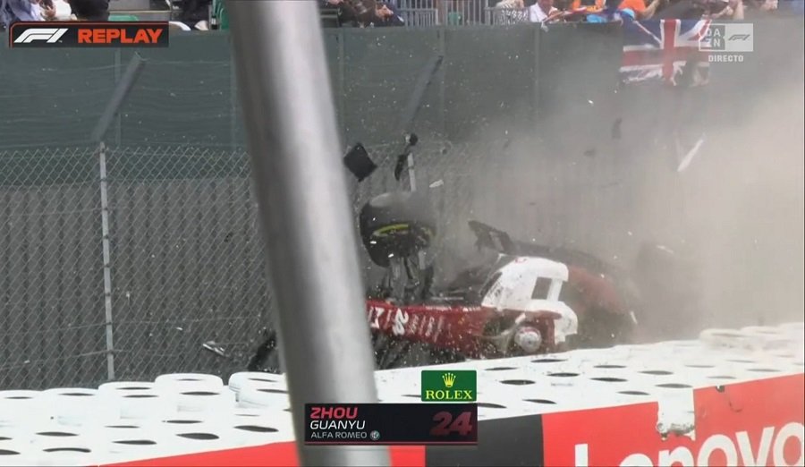 Άσχημο περιστατικό συνέβη στην εκκίνηση του GP του Σίλβερστοουν. Το μονοθέσιο του Ζου γύρισε ανάποδα με μεγάλη ταχύτητα, ενώ οι Ράσελ και Αλμπόν αποχώρησαν και φυσικά ενεργοποιήθηκε άμεσα η κόκκινη σημαία. Οι Οκόν και Τσουνόντα επέστρεψαν στα πιτ με πρόβλημα επίσης.