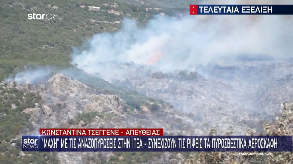 "Μάχη" με τις αναζωπυρώσεις στην Ιτέα - Συνεχίζουν τις ρίψεις τα πυροσβεστικά αεροσκάφη (VIDEO)
