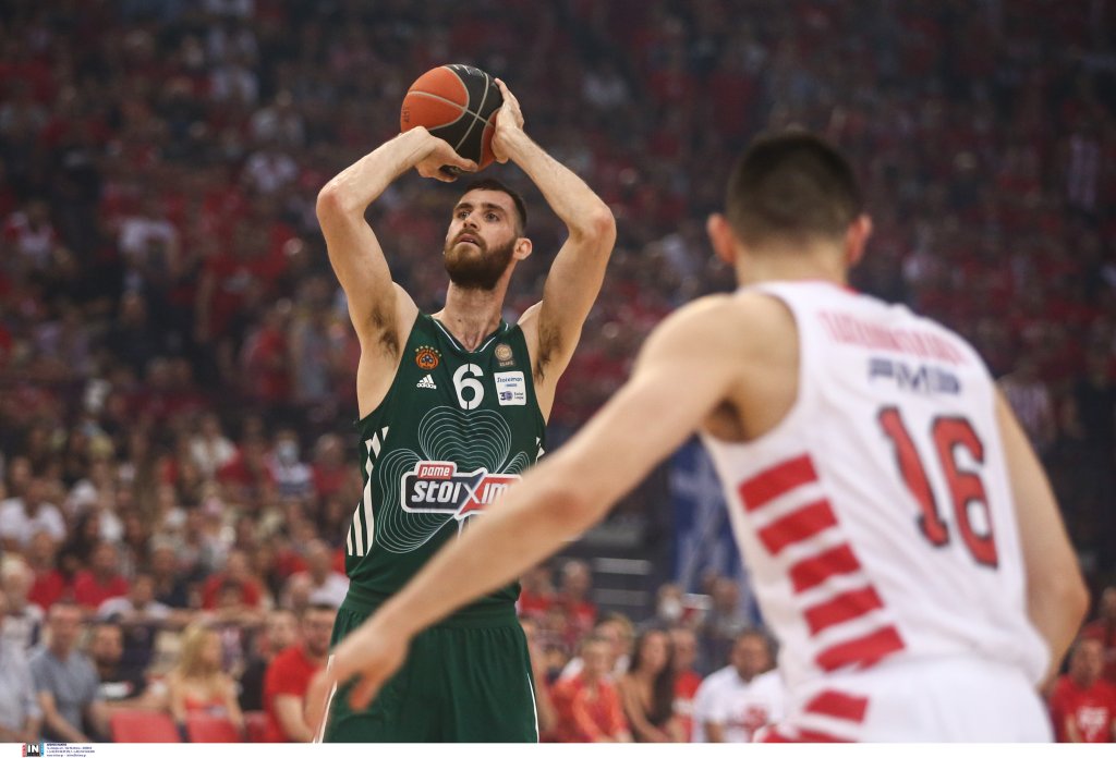 Ο «πύργος» του Παναθηναϊκού αφού κόβει στα ίσια τον Γιώργο Πρίντεζη, στη συνέχεια φεύγει στον αιφνιδιασμό και μετά από πάσα του Ντάριλ Μέικον ολοκληρώνει τη φάση με άλεϊ ουπ κάρφωμα.