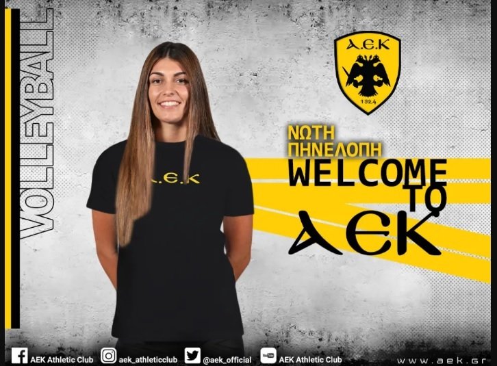 Η ΑΕΚ βρίσκεται στην ευχάριστη θέση να ανακοινώσει την έναρξη της συνεργασίας της με την Πηνελόπη Νώτη. Η 25χρονη (07/08/1997) ακραία, ύψους 1,87 μ., υπέγραψε μονοετές συμβόλαιο και εντάσσεται στο δυναμικό της γυναικείας ομάδας Βόλεϊ του Συλλόγου.