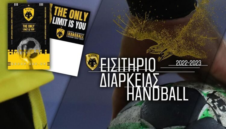- Με ηλεκτρονική παραγγελία από την επίσημη ιστοσελίδα του Συλλόγου, www.aek.gr, κλικάροντας στο μενού ΕΙΣΙΤΗΡΙΟ ΔΙΑΡΚΕΙΑΣ ΧΑΝΤΜΠΟΛ ΑΝΔΡΩΝ-ΓΥΝΑΙΚΩΝ 2022-23.