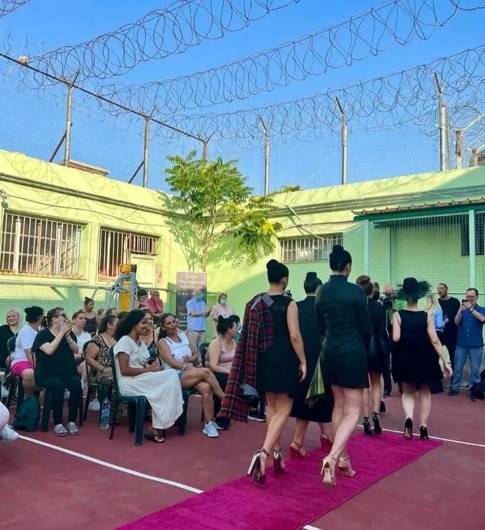 Σε πασαρέλα μετατράπηκε το απόγευμα της Τετάρτης ο προαύλιος χώρος των φυλακών Κορυδαλλού με τις κρατούμενες να γίνονται για λίγες ώρες μοντέλα και να φορούν δημιουργίες της σχεδιάστριας, Γεωργίας Χιόνη.