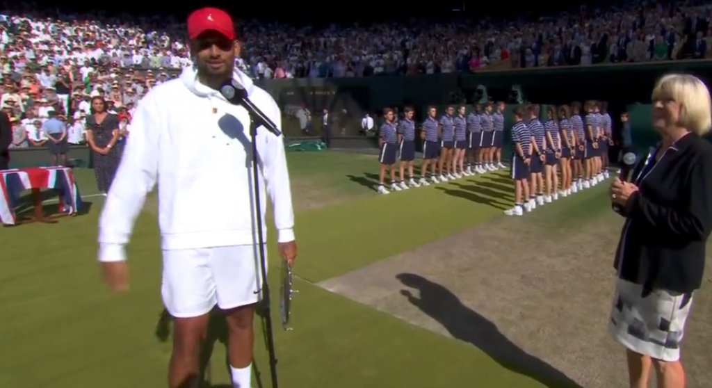 Ο Νικ Κύργιος έκανε μεγάλη προσπάθεια απέναντι στον Τζόκοβιτς αλλά ηττήθηκε τελικά στον τελικό του Wimbledon. Σε δηλώσεις του μετά τον αγώνα τόνισε: «Δεν θα πω ψέματα, είναι κορυφαίος. Θέλω να τον συγχαρώ για ό,τι έκανε όλη την εβδομάδα, έχω χάσει το μέτρημα των τίτλων του. Έχουμε μια ιδιαίτερη σχέση. Θέλω να ευχαριστήσω τον κόσμο, ήταν δύο υπέροχες εβδομάδες για εμένα, ίσως οι καλύτερες της καριέρας μου μέχρι στιγμής».