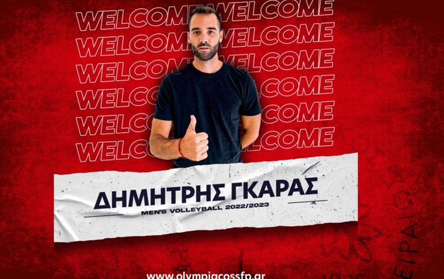 «Ο ΟΛΥΜΠΙΑΚΟΣ Σ.Φ.Π. ανακοινώνει την έναρξη της συνεργασίας του με τον Δημήτρη Γκαρά. Ο διεθνής λίμπερο (ημ. γέννησης 12/11/1985) υπέγραψε το νέο του συμβόλαιο και εντάσσεται στο ρόστερ της ομάδας βόλεϊ Ανδρών του συλλόγου.