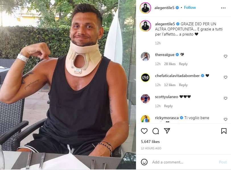 "Ευχαριστώ τον Θεό για τη νέα ευκαιρία και σας ευχαριστώ όλους για την αγάπη σας. Θα τα πούμε σύντομα", ανέφερε η λεζάντα του Τζεντίλε, ο οποίος αγωνίζεται στην Μπρίντιζι.