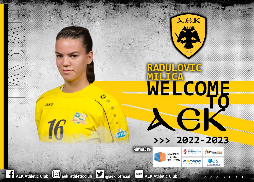«Η ΑΕΚ βρίσκεται στην ευχάριστη θέση να ανακοινώσει την έναρξη της συνεργασίας της με την Μίλιτσα Ραντούλοβιτς. Η 23χρονη (31/01/1999) τερματοφύλακας, ύψους 1,77 μ., υπέγραψε μονοετές συμβόλαιο και εντάσσεται στο δυναμικό της γυναικείας ομάδας Χάντμπολ της ΑΕΚ.