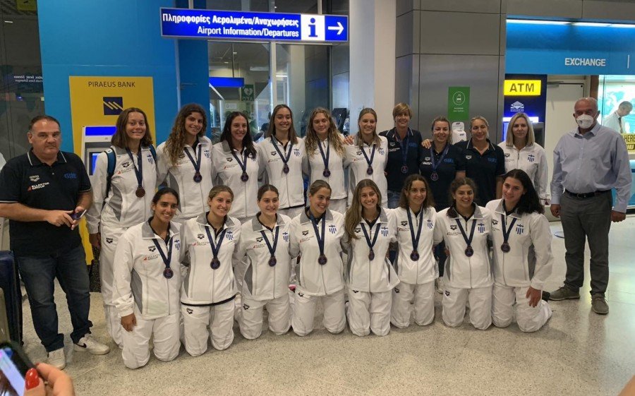 Οι αθλήτριες που διακρίθηκαν στο Ισραήλ και επέστρεψαν το πρωί: Φοίβη Αγγελίδη, Τίνα Καϊάφα, Λυδία Μαυρωτά, Θωμαίς Μουστακαρία, Ευδοκία Τσιμάρα, Μαρία Καραγιάννη, Στεφανία Σάντα, Σοφία Τορνάρου, Ευφροσύνη Τσιμάρα, Νεφέλη Χαλδαίου, Δέσποινα Καλογεροπούλου, Φωτεινή Τριχά, Διονυσία Κουρέτα και Χριστίνα Σιούτη. Μαζί τους στην αποστολή ήταν η Ομοσπονδιακή τεχνικός Ευτυχία Καραγιάννη, η συνεργάτης της Κατερίνα Οικονομοπούλου, η φυσικοθεραπεύτρια Ειρήνη Κουρούμαλου, η διεθνής διαιτητής Μαρία Δασκαλοπούλου και ο υπεύθυνος των τμημάτων υποδομής της γυναικείας υδατοσφαίρισης Δημήτρης Κύρκος (αρχηγός αποστολής). Μαζί, από τις 8/7, ήταν και η Ομοσπονδιακή τεχνικός των Γυναικών Αλεξία Καμένου.