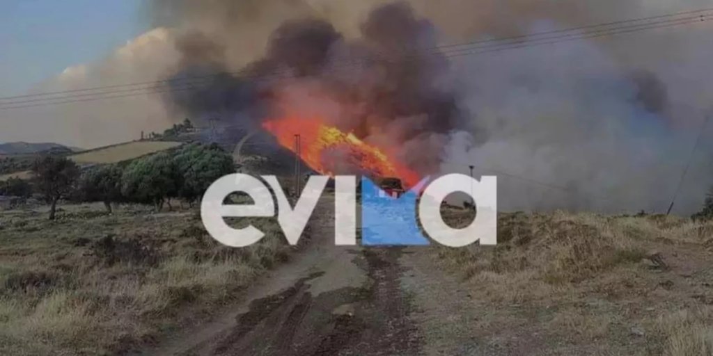 Οι ισχυροί άνεμοι 7 και 8 μποφόρ που πνέουν στην περιοχή της Καρύστου Ευβοίας δημιουργούν ιδιάζουσες συνθήκες στην προσπάθεια κατάσβεσης της φωτιάς.