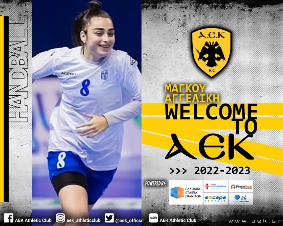 Η ΑΕΚ βρίσκεται στην ευχάριστη θέση να ανακοινώσει την έναρξη της συνεργασίας της με την Αγγελική Μάγκου. Η 22χρονη (13/08/2000) πλέι μέικερ, ύψους 1,73 μ., υπέγραψε μονοετές συμβόλαιο και εντάσσεται στο δυναμικό της γυναικείας ομάδας Χάντμπολ της ΑΕΚ.