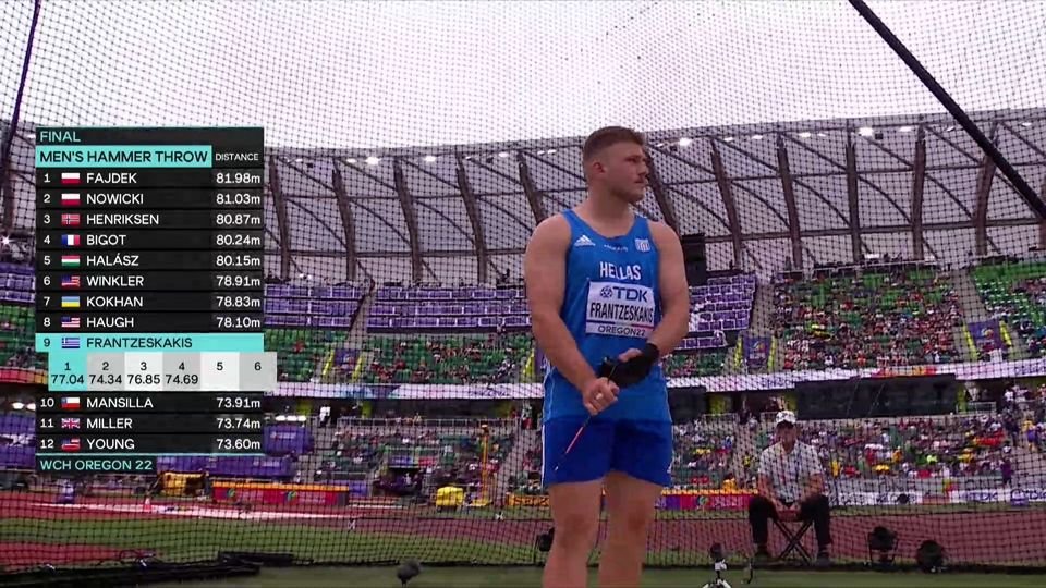 Ο Χρήστος Φραντζεσκάκης αγωνίστηκε σήμερα στον τελικό της σφυροβολίας στο 18ο Παγκόσμιο Πρωτάθλημα του Όρεγκον.