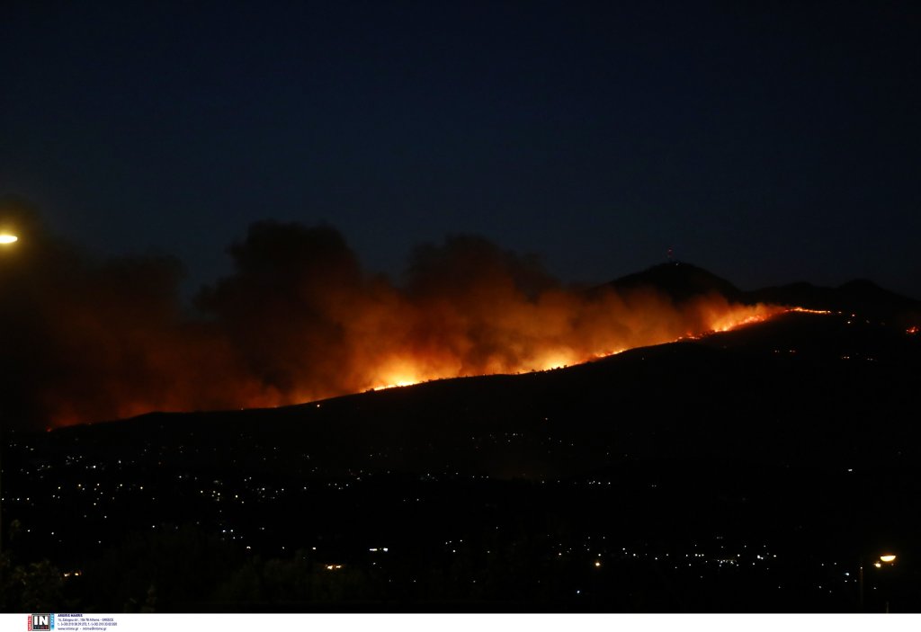 00.35 - Το πύρινο μέτωπο κινείται προς την κορυφογραμμή της Πεντέλης