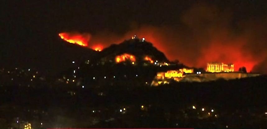 Ένα συγκλονιστικό πλάνο μετέδωσε ο ΣΚΑΪ. Σε αυτό φαίνεται η Ακρόπολη και στο φόντο φαίνονται οι φλόγες που καίνε από την Πεντέλη.