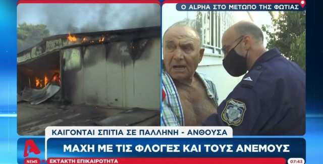 Ανθούσα: Κάτοικος προσπαθεί με λεκάνη να σβήσει φωτιά (VIDEO)
