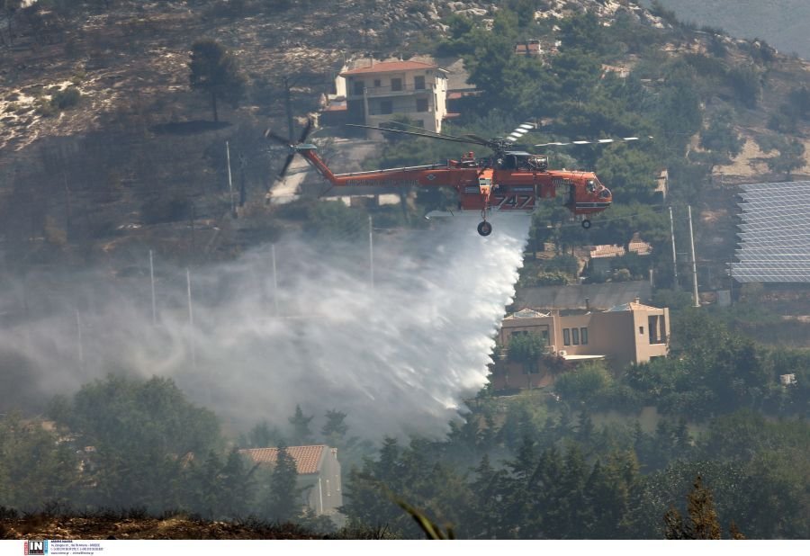 Η εξάπλωση των θερμών σημείων από τον ορεινό όγκο της Πεντέλης προς τα νότια αποκαλύπτει τη μεγάλη εξάπλωση της δασικής πυρκαγιάς η οποία καθοδηγείται από τους ισχυρούς βόρειους ανέμους.