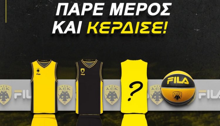Μεγάλος διαγωνισμός από την ΑΕΚ και τη FILA. Tέσσερις τυχεροί νικητές θα κερδίσουν 1 σετ της εντός έδρας εμφάνισης της ομάδας, 1 σετ της εκτός έδρας εμφάνισης της ομάδας, τη φανέλα έκπληξη της σεζόν 2022-2023 και 1 μπάλα μπάσκετ στα χρώματα της «Βασίλισσας».