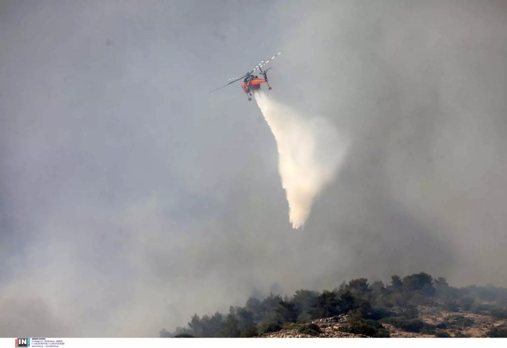 Η φωτιά καίει σε αγροτοδασική έκταση και έχουν κινητοποιηθεί επίγειες δυνάμεις και δύο ελικόπτερα για την κατάσβεσή της.